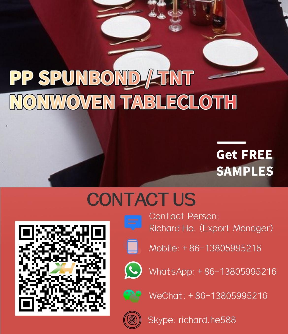 | Nombre del producto | Mantel Xinhua de 50 g/m² con logotipo, impermeable, de polipropileno spunbond no tejido, venta al por mayor |